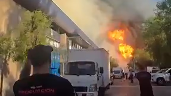 25 compañías de Bomberos llegaron hasta el lugar y aunque las llamas -que se extendieron a un estacionamiento repleto de vehículos y una empresa colindante-, se encuentran controladas, los voluntarios debieron dar un paso atrás puesto que aún existe riesgo de una nueva detonación, tal como informó el comandante del Cuerpo de Bomberos de Quilicura, Rodrigo Espinoza.